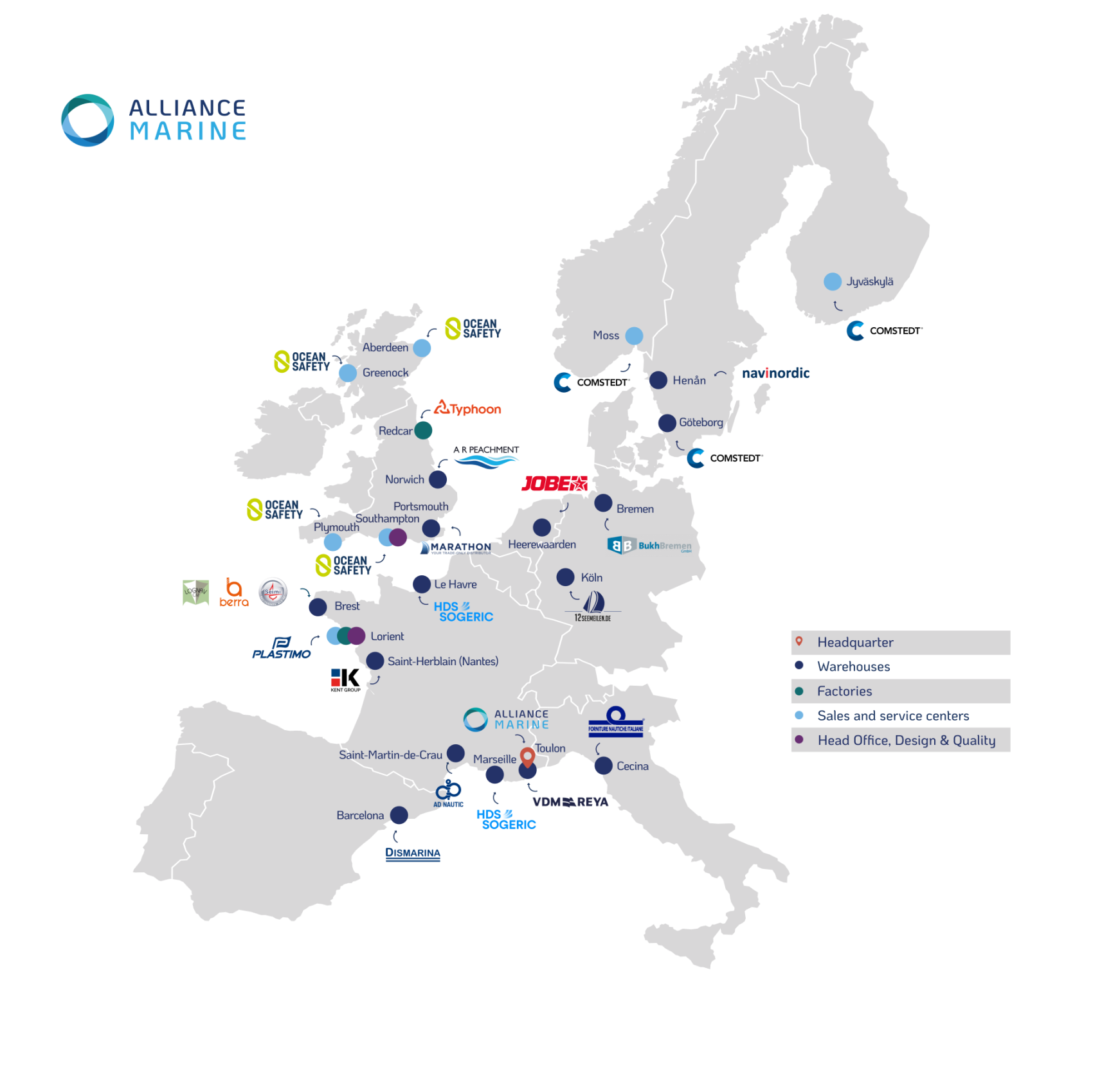 Capitalisant sur son expertise unique de la distribution, Alliance Marine est aujourd'hui un groupe d'entreprises profondément ancré dans le secteur maritime incluant la navigation de plaisance, la marine professionnelle et tous les métiers de la mer.